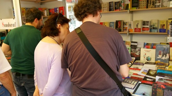 Feria del libro. Caminando por Valladolid para ver mi poemario en la caseta de la librería Sandoval, en la Plaza Mayor. Además paseando hacia la misma librería al lado de El Salvador, junto al Pasaje Gutiérrez.