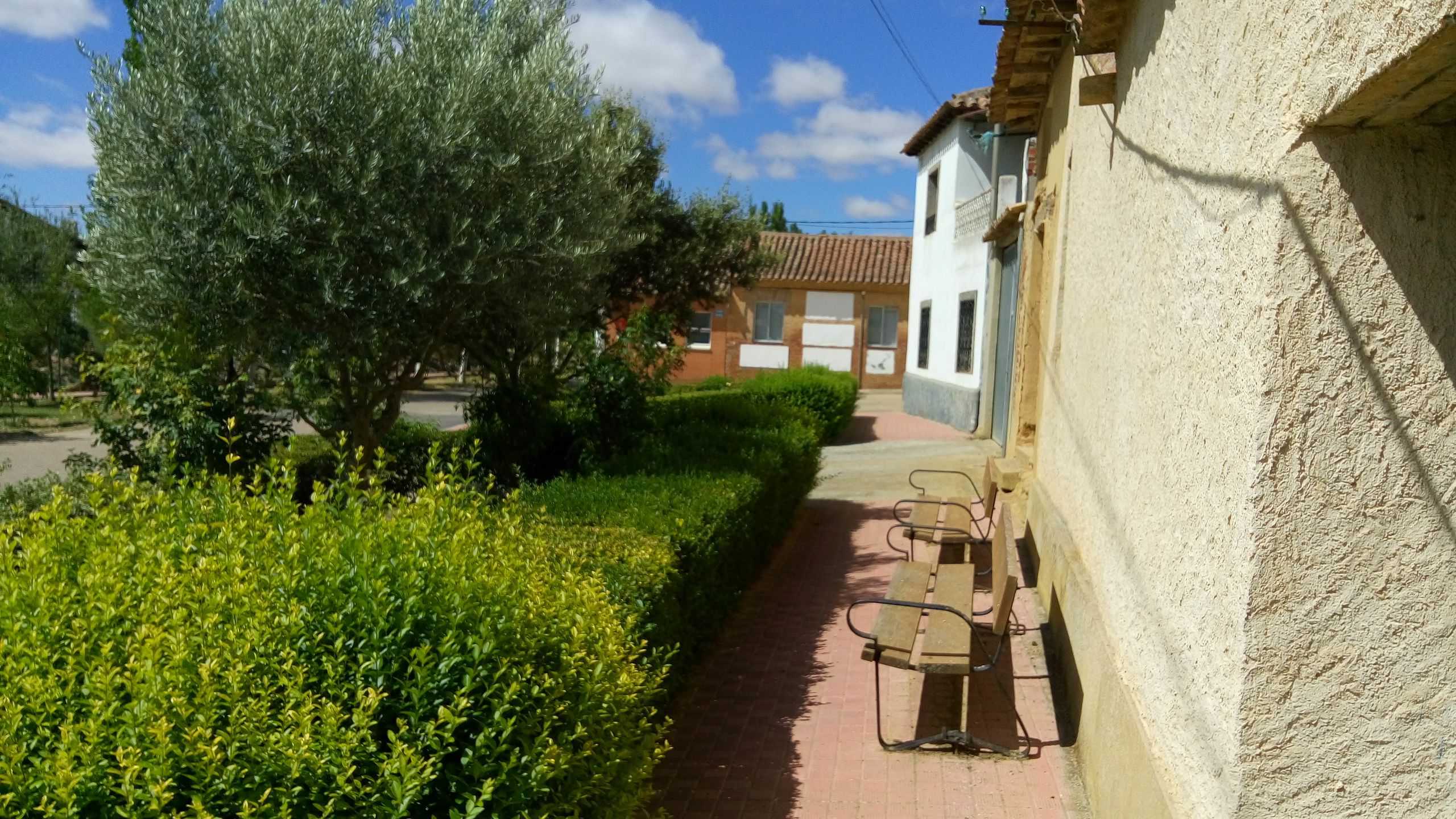 bancos de piedra, evónimos y acacias